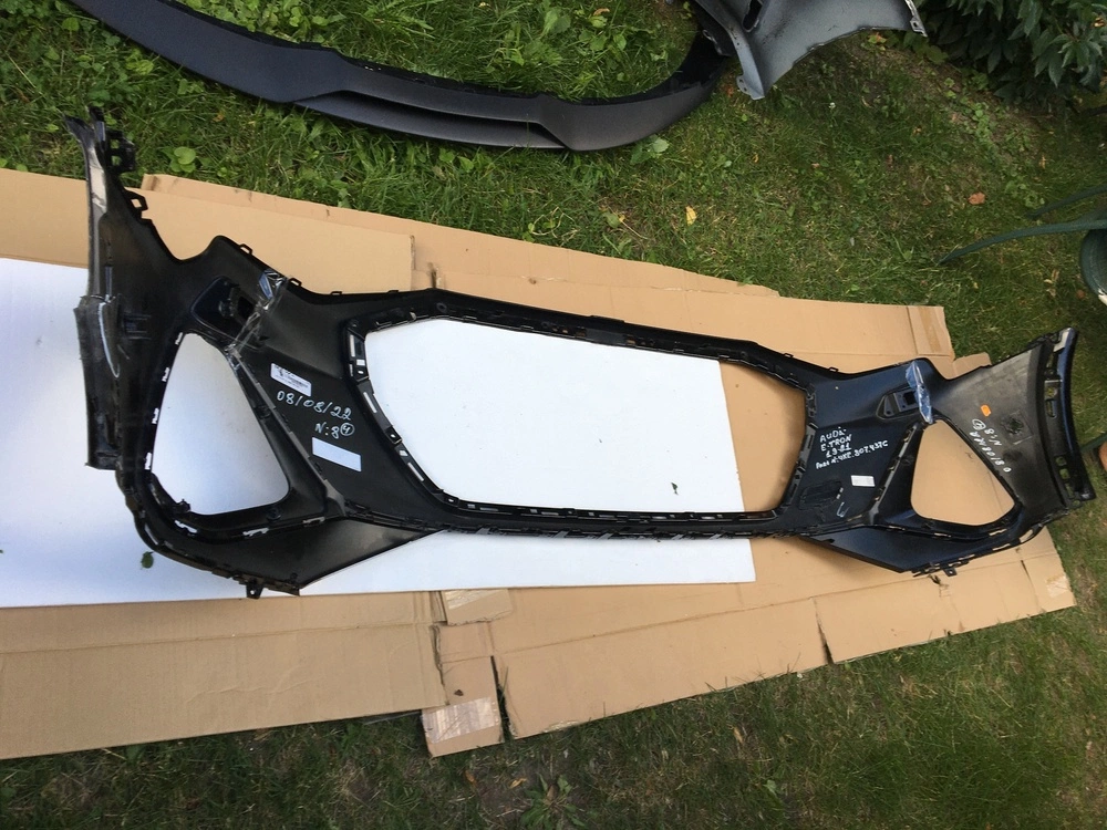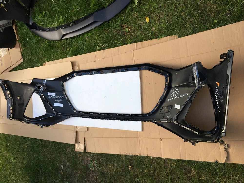 08/08/22№8/4 AUDI E-TRON 19-21 Бампер передній під парк-троніки+омивачі (Чорний) +RH+LH кришки омивачів+крюк буксіровки