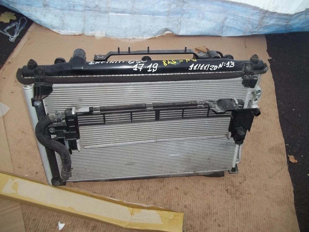 11/11/20-№13 INFINITI Q-50 17-21 КАСЕТА РАДІАТОРІВ Комплектна 1)-INTERCOOLER, 2)-A/C-CONDENSER 3)RADIATOR 4)- Вінтелятори+дифузор +Компютер що на дифузорі+нижній патрубок+верхній металевий держатіл