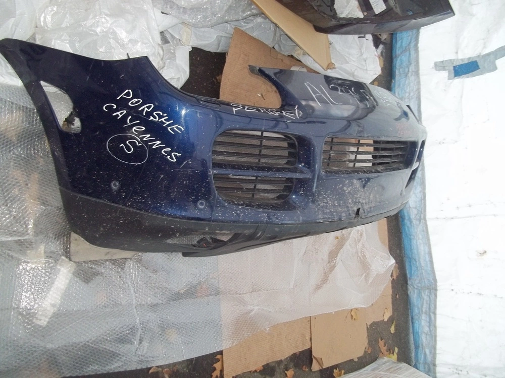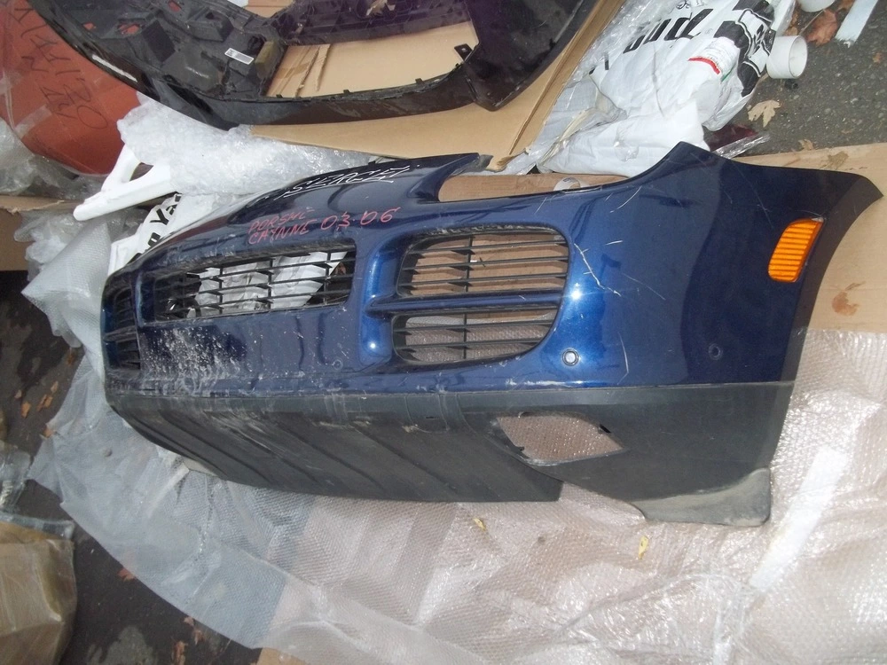 11/11/20-№26/1 PORSCHE CAYENNE 03-06 Бампер передній (темно-синій дипломат) комплектний з ришітками+нижння губа+омивачі+парк-троніки+проводка+шланг омивача90%