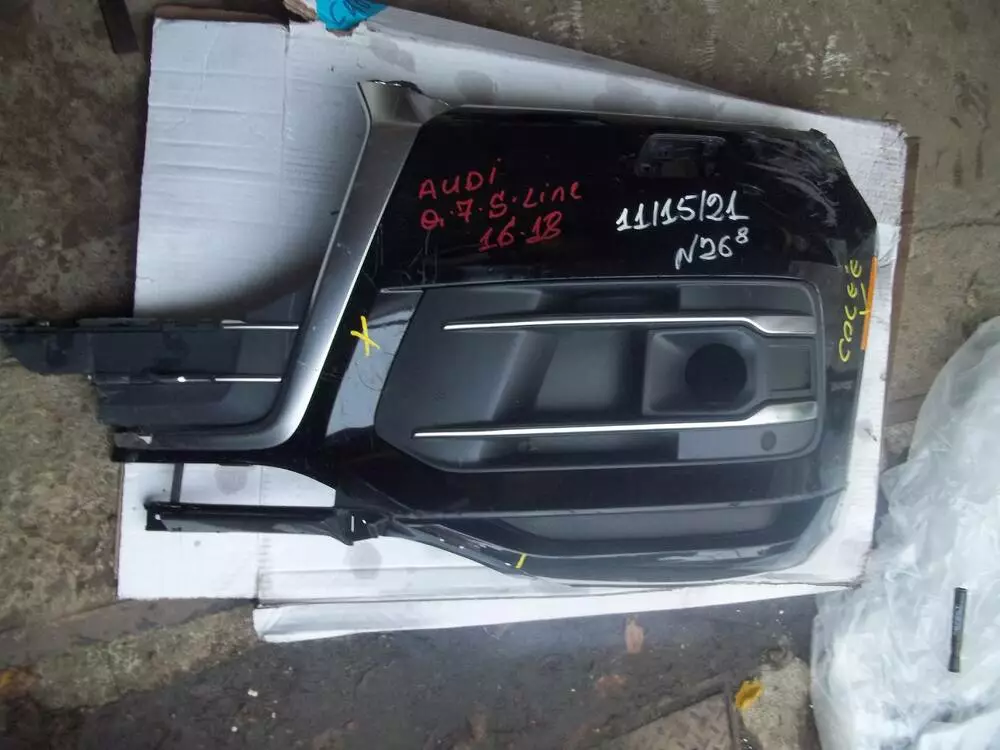 . AUDI Q-7 S-LINE 16-19 Клик переднього Бамперу LH Part№4M0.807.095E під ремонт +++ + Заглушка туманки LH з парок-троніком Part№4M0.807.151A--100% (омивач біля ришітки)