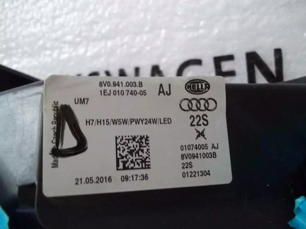 Фара LH з жовтим відбивачем №8V0.941.003B під фарою є направляющі на склі відломані (вони ховаються під бампером), AUDI A-3 12-16