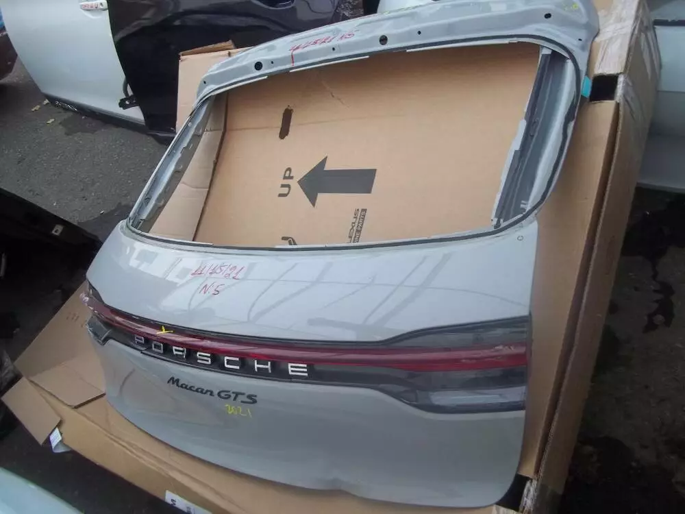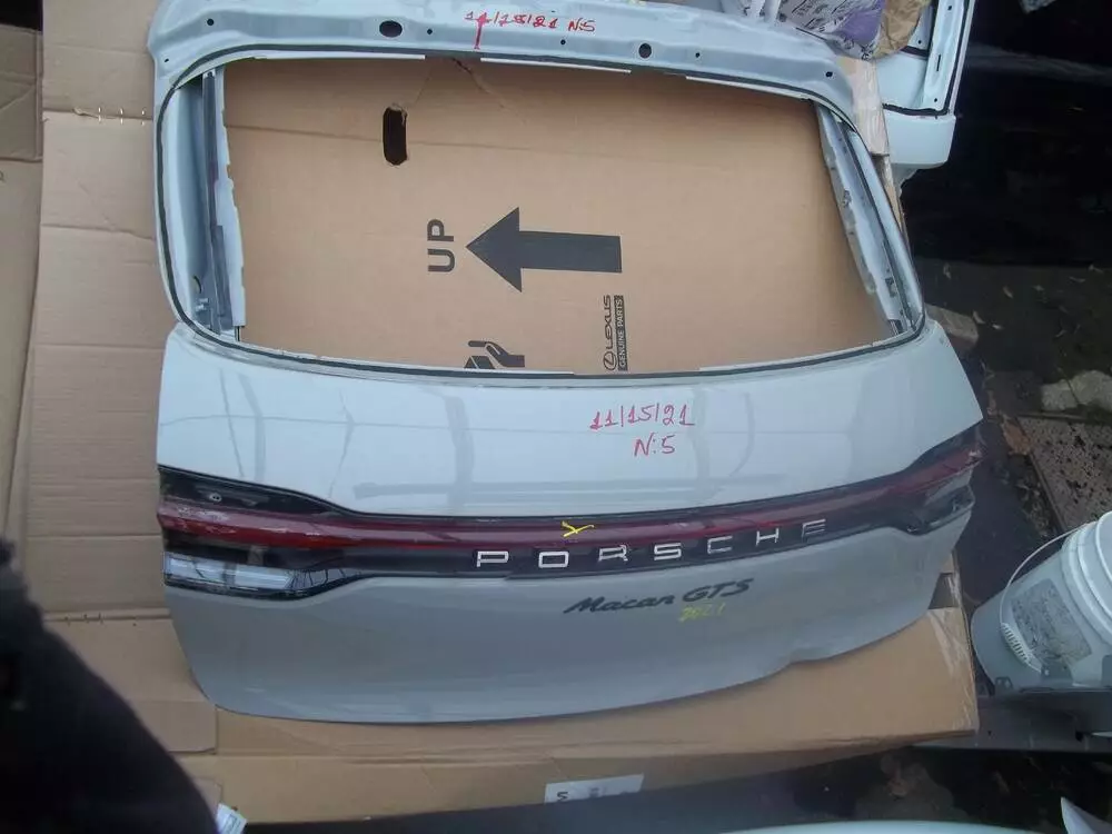 PORSCHE MACAN GTS 20-22 Кришка Багажнику Part№ 202.721.3065(новому-кольорі Сіро-Голуба) знизу підігнута незначно+Фонарь через всю кришку під ремон