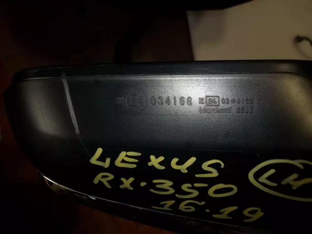 Зеркало LH (Біли-перламутр) Комплектне на 15-провідків з хромом+під мертві зони Part-№E4034168, LEXUS RX-350 16-20